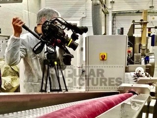 Deutsches Kamerateam in Barcelona, Spanien mit Sony FS7 Kamera-Equipment für Pro7 Galileo Beitrag in der Chupa-Chups Fabrik: “Chupa Chups Die 7 Geheimnisse über die bunten Lutscher”.