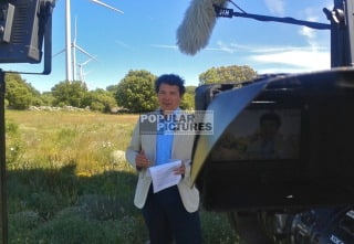English-speaking camera crew, Zaragoza Spain with Sony XDCAM, sound and lighting for Discovery Channel piece about wind turbine park in Soria, near Zaragoza, Spain.