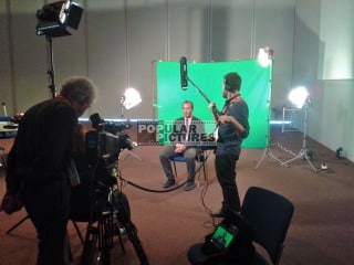 Lighting camera-crew in Barcelona for multi-camera-conference production and interviews with green screen during the ESMO World Congress of Gastrointestinal Cancer in Barcelona, Spain. End client: Bayer Healthcare