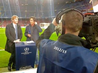 Live cameraman (SNG) UEFA Champions League football match FC Barcelona – AC Milan. Camp Nou, Barcelona, Spain.